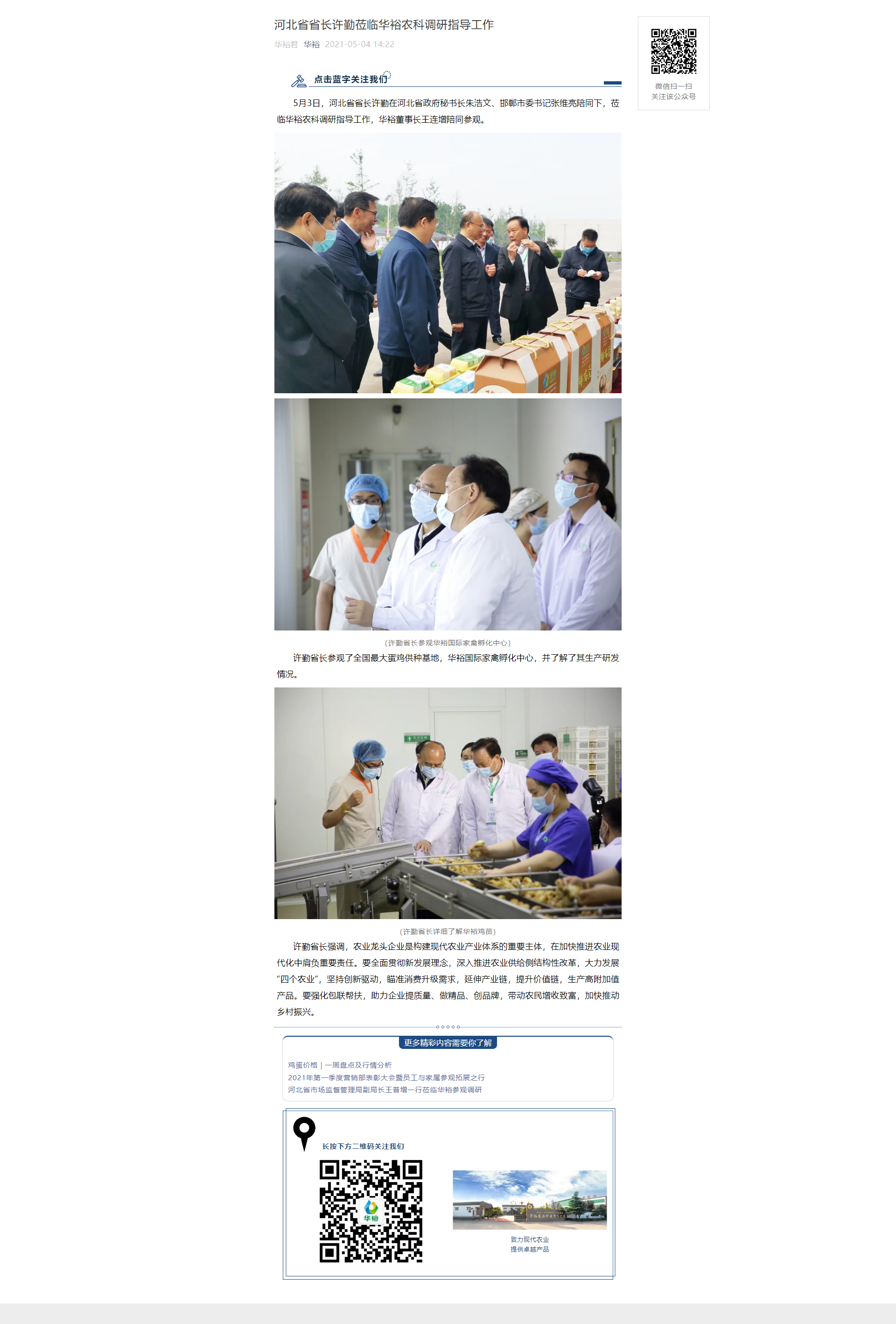河北省省長許勤蒞臨華裕農(nóng)科調(diào)研指導工作